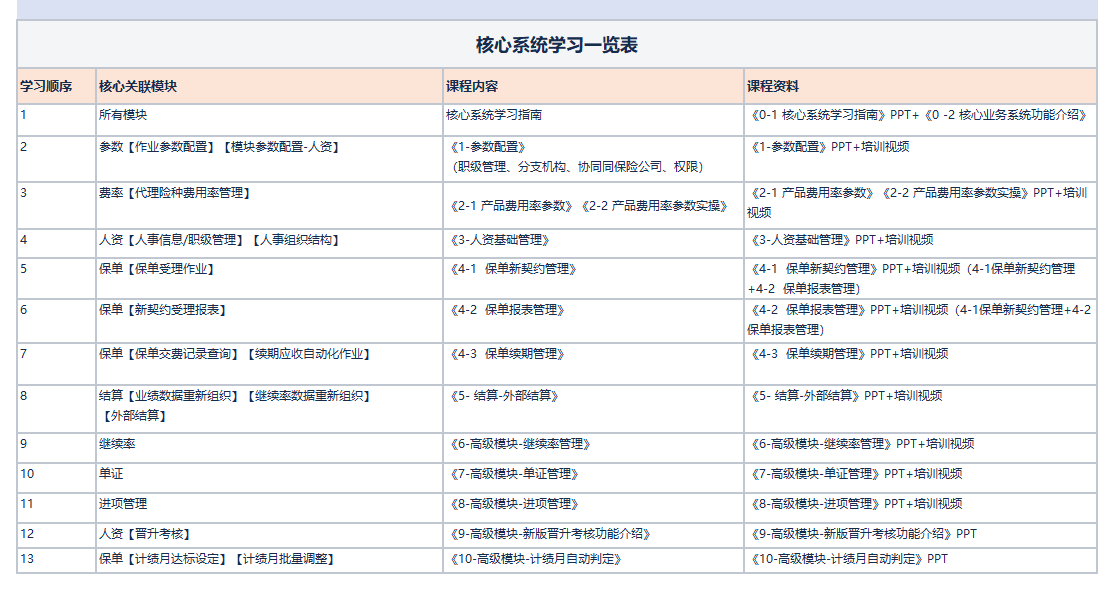 :idea: 例如:人管老师就可以只学习核心系统中的人资模块…