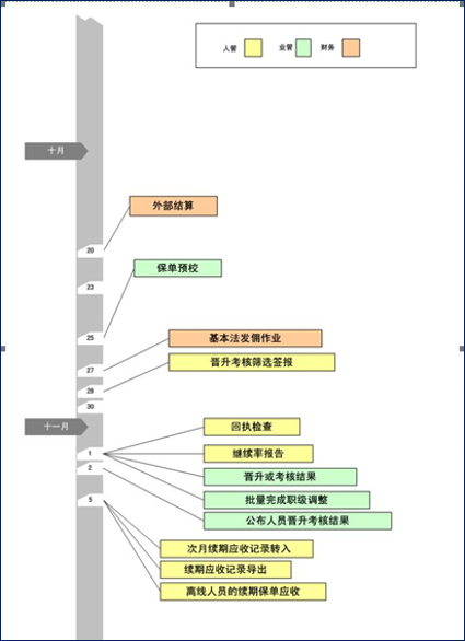 :idea: 系统上线使用会涉及到的核心流程包括:投保预收流程、保单承保流程、入司报聘流程、晋升考核流程、外部结算(核佣)流程、内部结算计佣流程、续期管理流程、产品参数换算率更改流程、系统使用帐号申请流程等等。