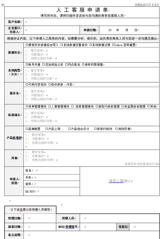 人工客服申请单制度