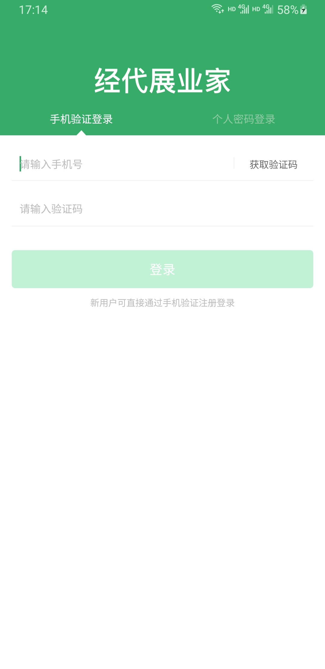 首次登录经代展业家,可以通过手机号验证注册登录,如图所示: