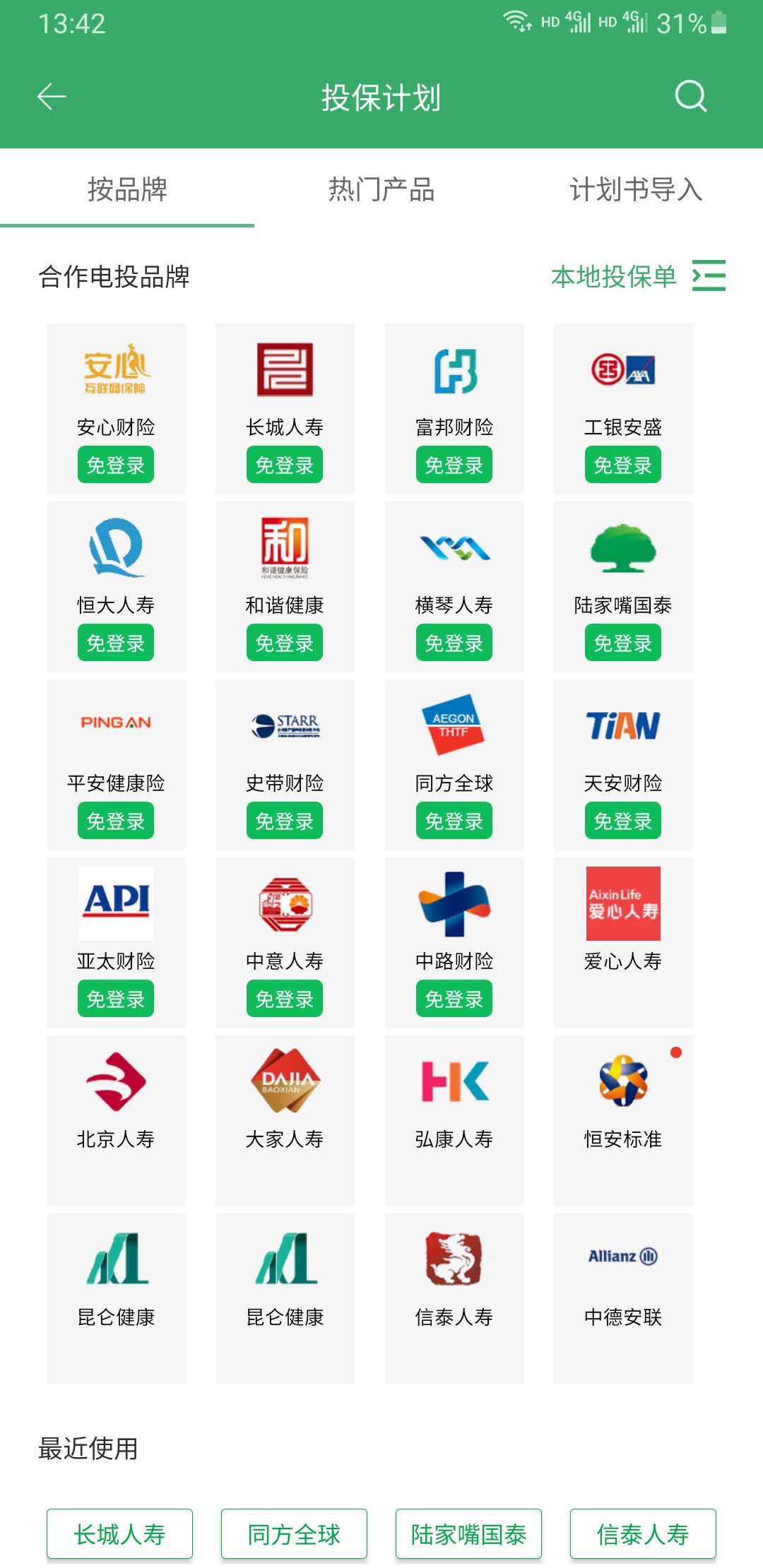 代理人的电子投保集成平台,点击进入之后,会分为两个区域:合作电投品牌、全部。