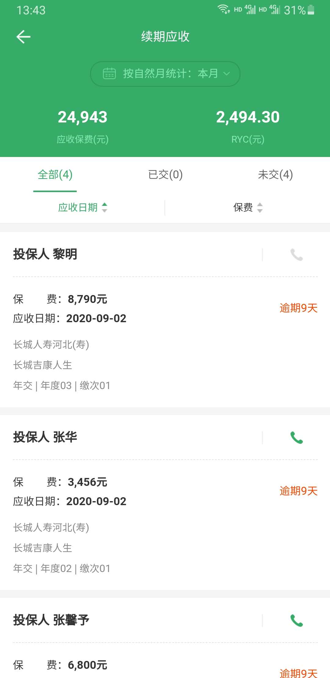 续期应收:可以查询本月的续期应收数据,也可以查询上月、上半年、本季度、全年等时间段的续期应收数据。如图所示: