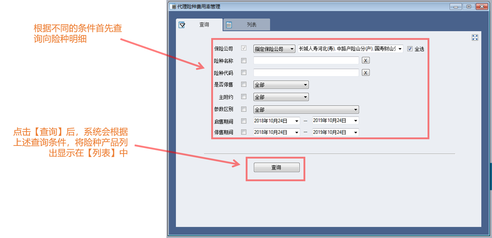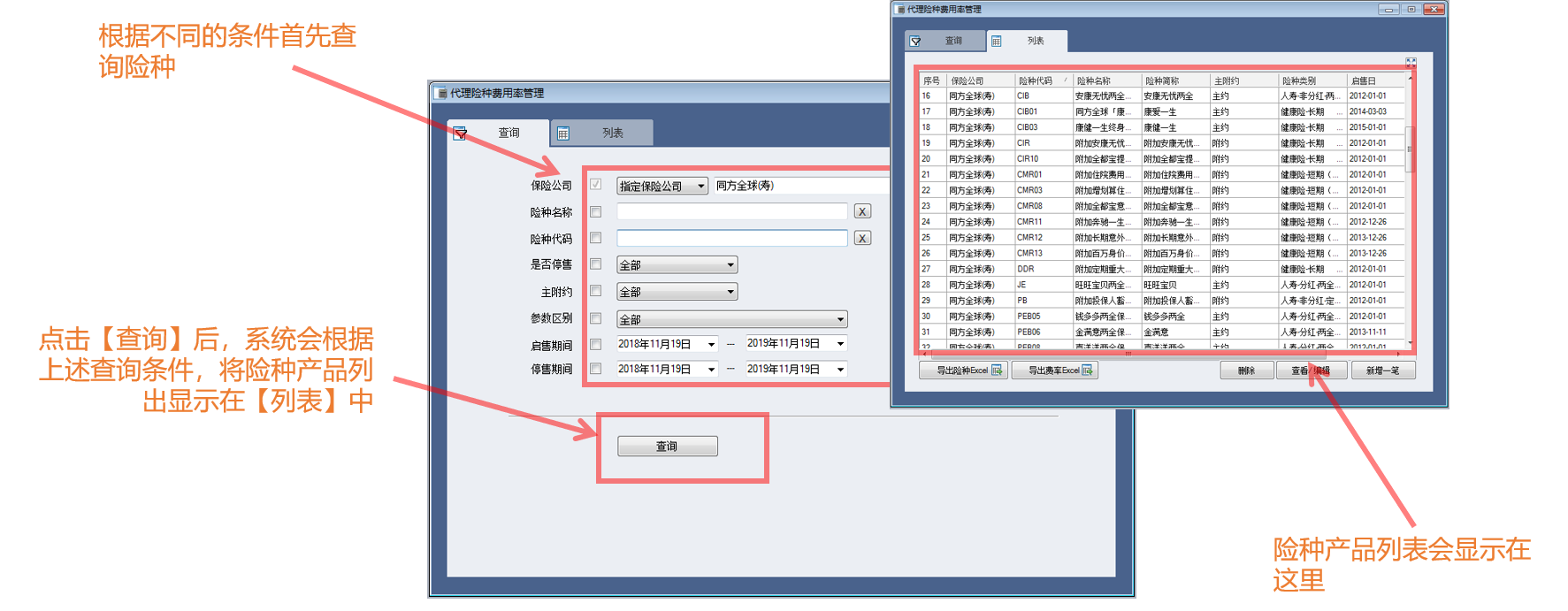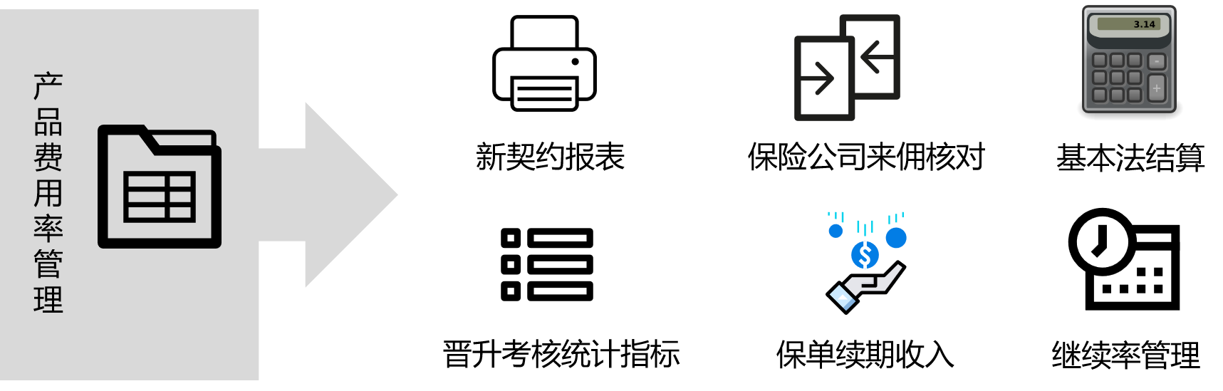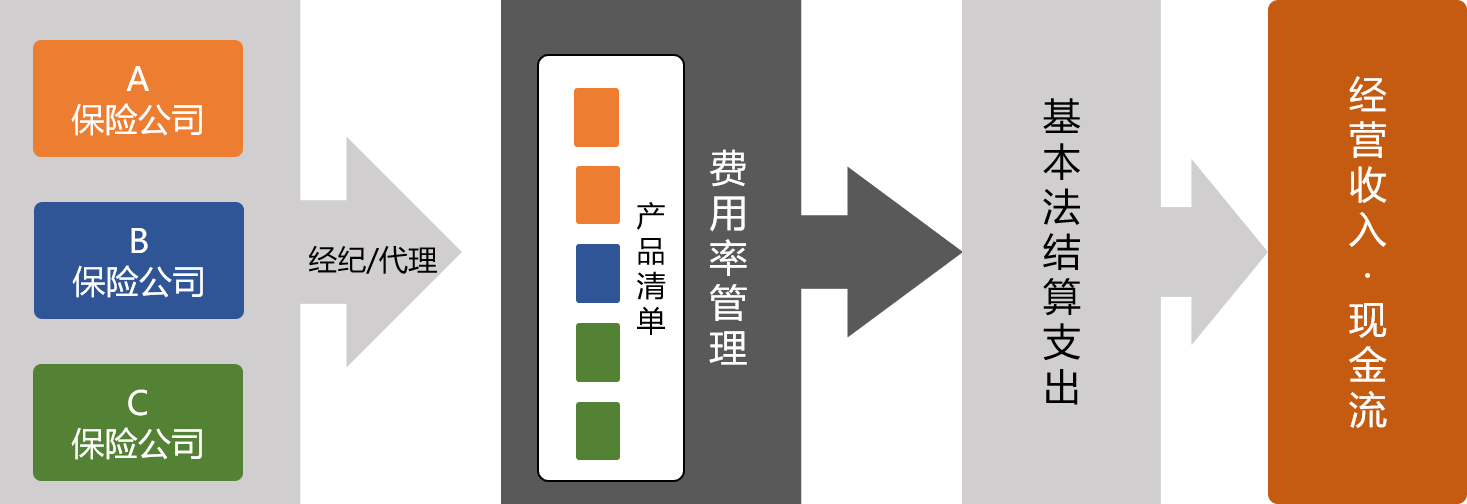 通过系统化的整理,将公司合作的多家保险公司的产品险种、将其对应不同管理需求的费用率管理起来,达到佣金收入与支出管理的目的