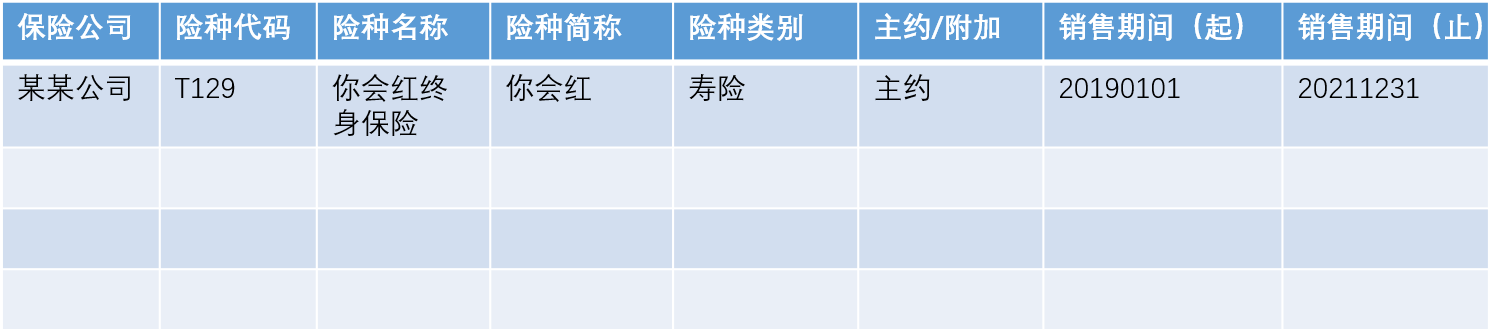 8、保险公司险种列表