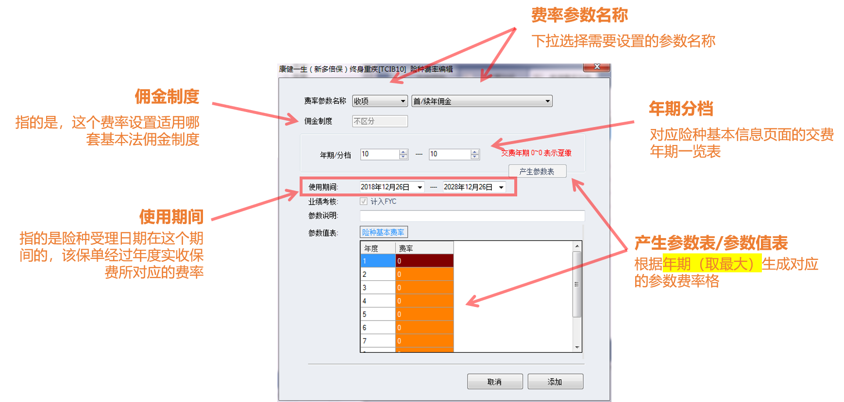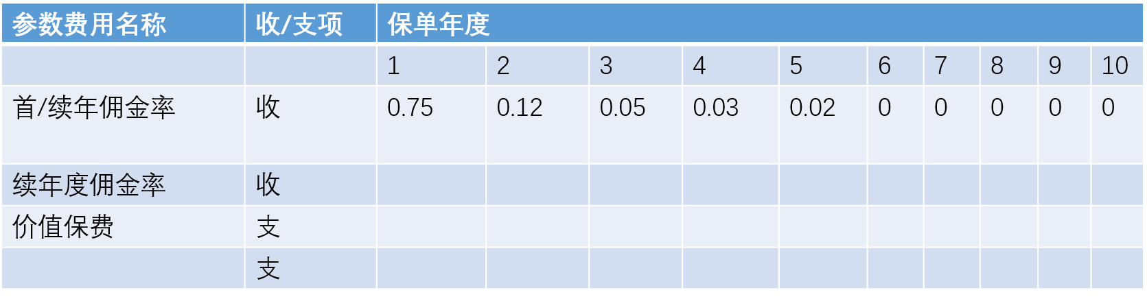 7、不同年期产品、逐一设置其参数费用率