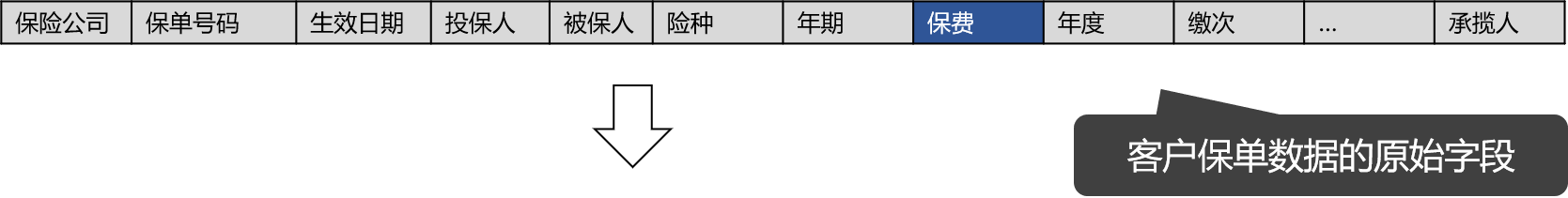 制定参数时,要维持一个原则,就是要根据原始保单数据字段基础来折算的参数才是我们要维护的,根据保单原始数据(如下示意图)中的保费字段来设置不同的费用率参数,完成: