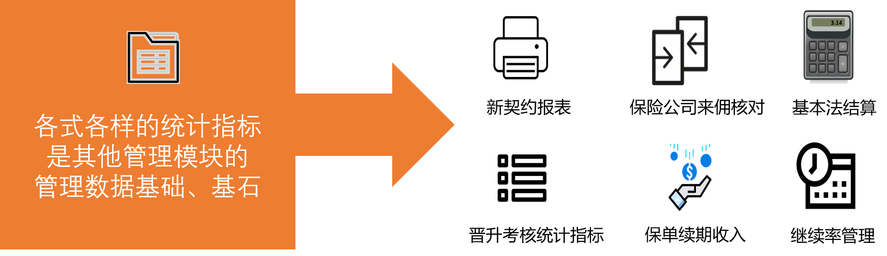 完成了产品参数费用率后,系统可以自动根据保单经过年度、得到不同的指标值,再通过其他的管理模块,协助经营管理