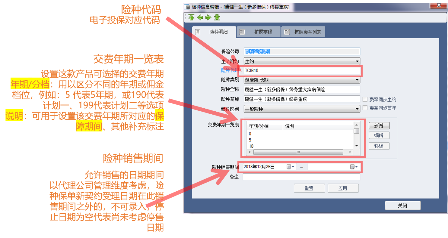 Tips 小贴示:险种名称虽然是同一个,但是如果有多个缴费年期,那么需要根据不同缴费年期的产品维护费用率