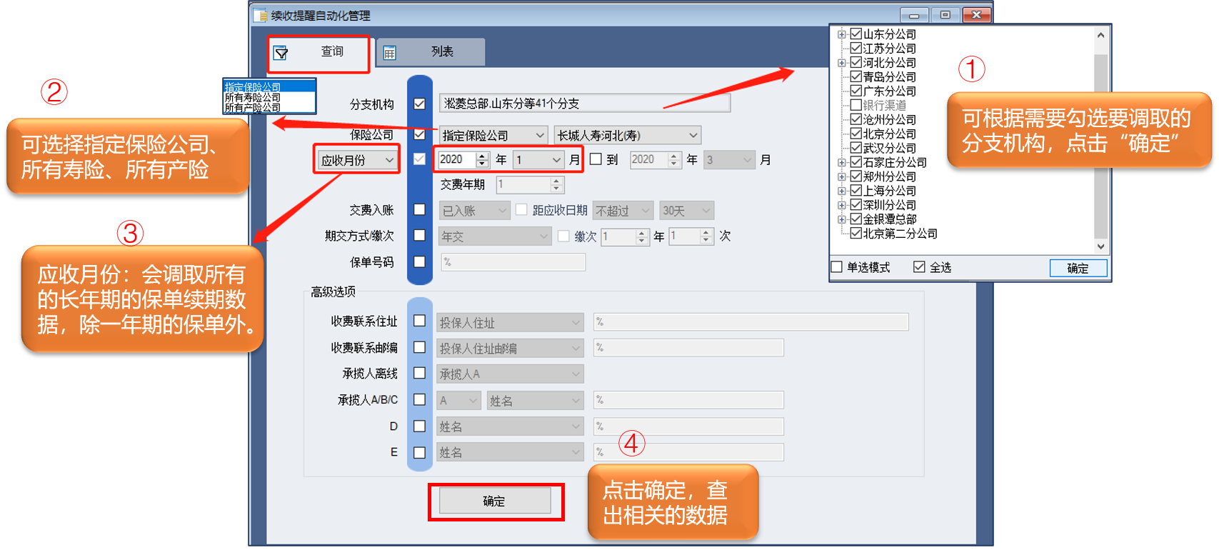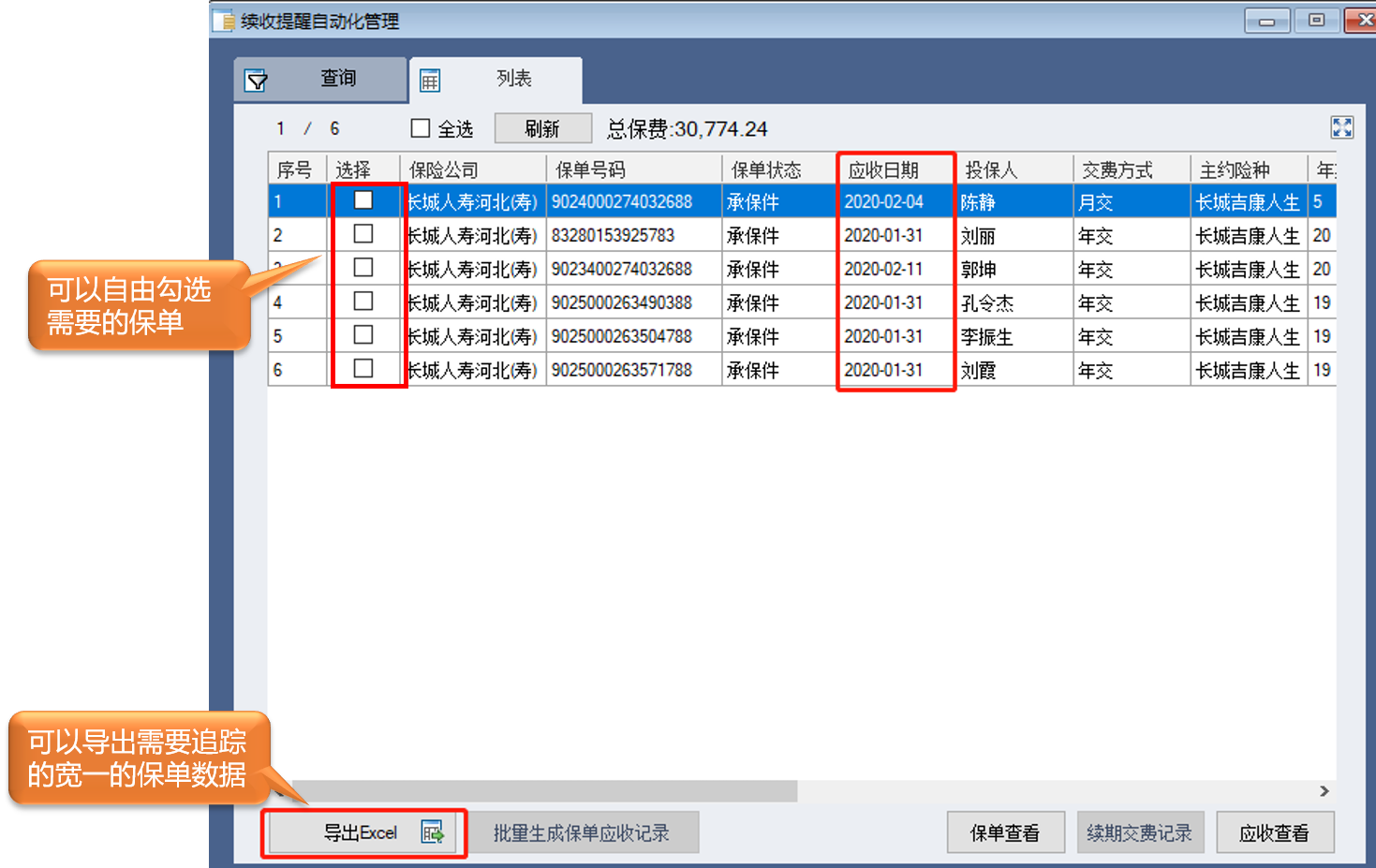 首先,确定要对哪些保单进行续收;