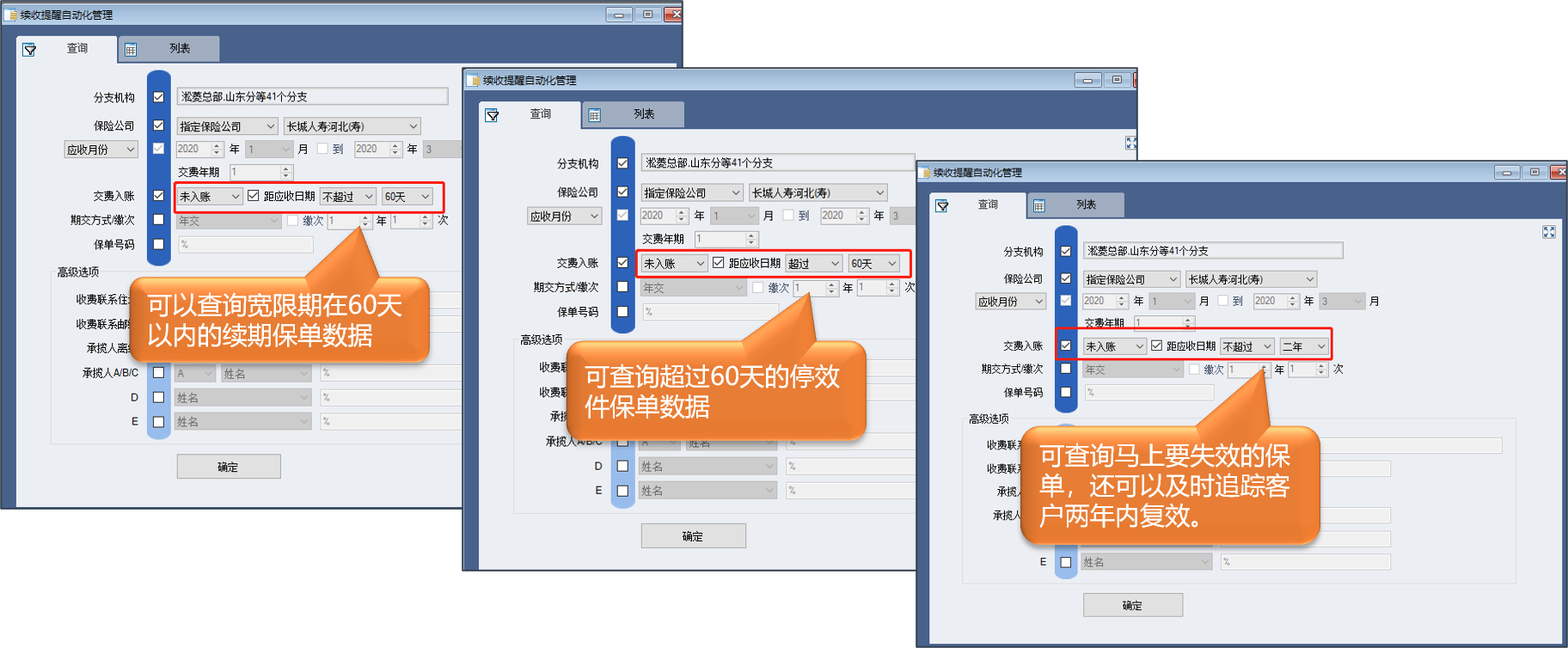 面向:负责寿险业务管理的老师,续期管理的内勤老师