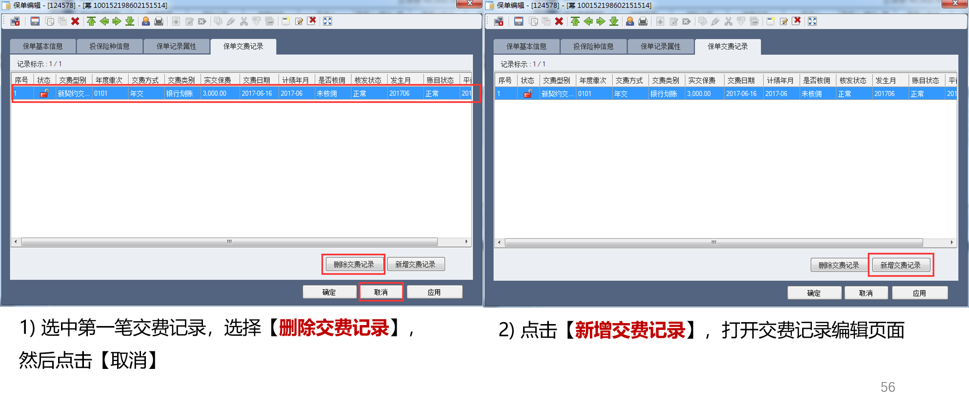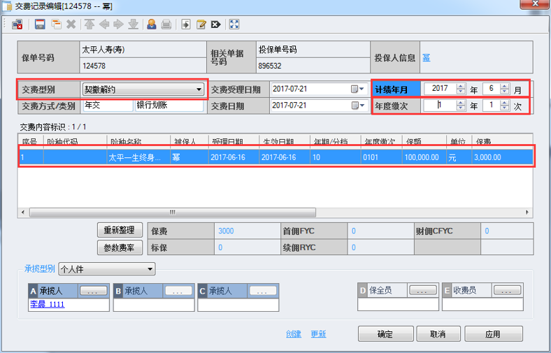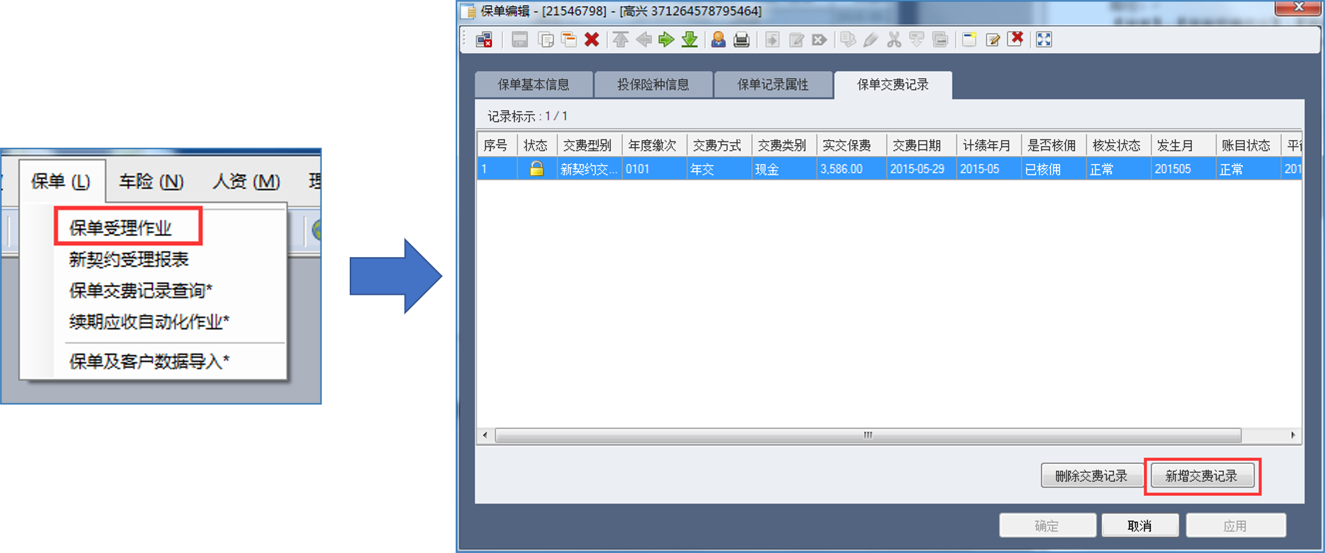 2、【保单交费记录】--新增交费记录