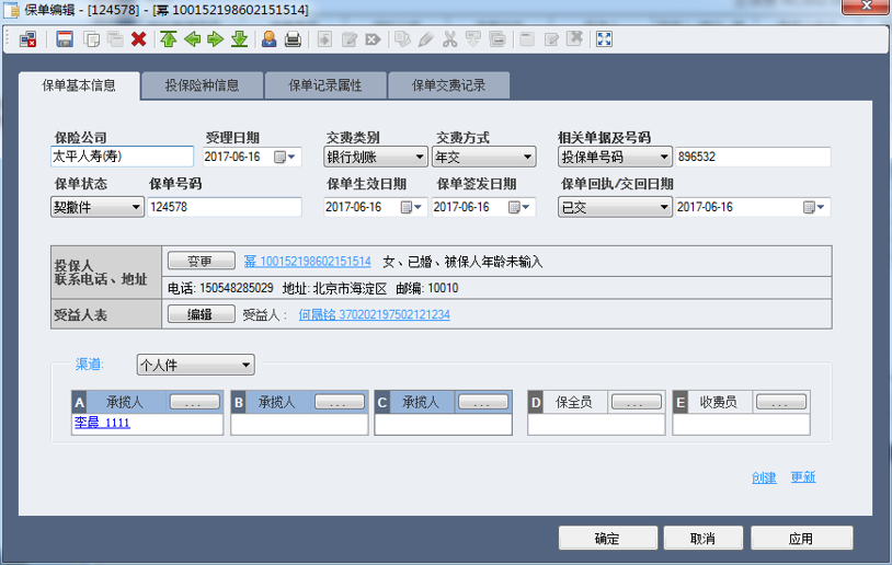 :mrgreen: 【保单查看】:查看选中行的保单的基本信息、险种信息、记录属性和交费信息;