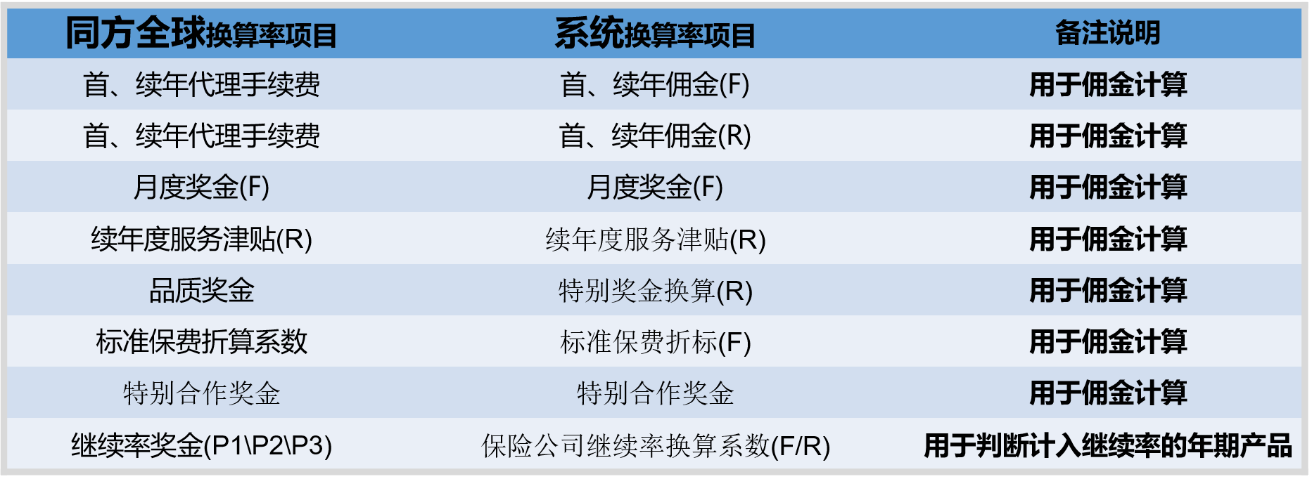 :ugeek: 收入项目不同:外部核佣中的收入项都是给到销售人员算入到基本法的,而进项管理中有的收入项(例如:继续率奖金)可能是不发给销售人员,只是作为经代公司的收入的。