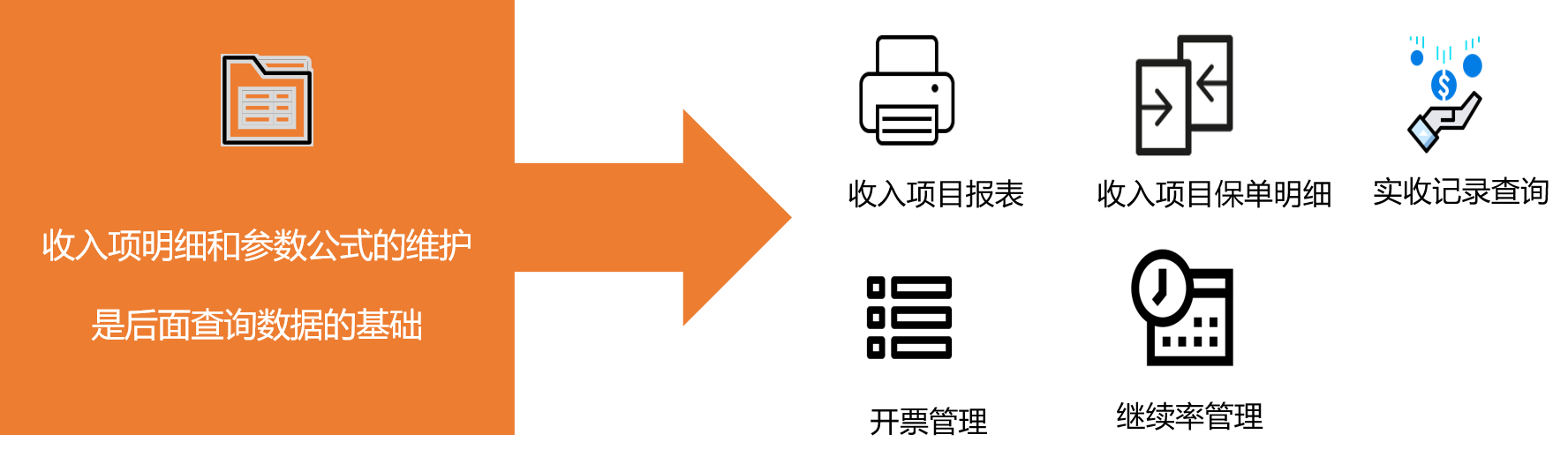 是帮助您管理除首/续年佣金、销售奖金、续年度服务费等这些与产品保费直接比例转化的收入项目之外的其他收入项(如年终奖金、继续率奖金、激励费用),还可以帮助您管理保险公司的进项记录,注明哪些已经收了,哪些项还没收,这样对于现金流测算能起到一定的帮助的模块。