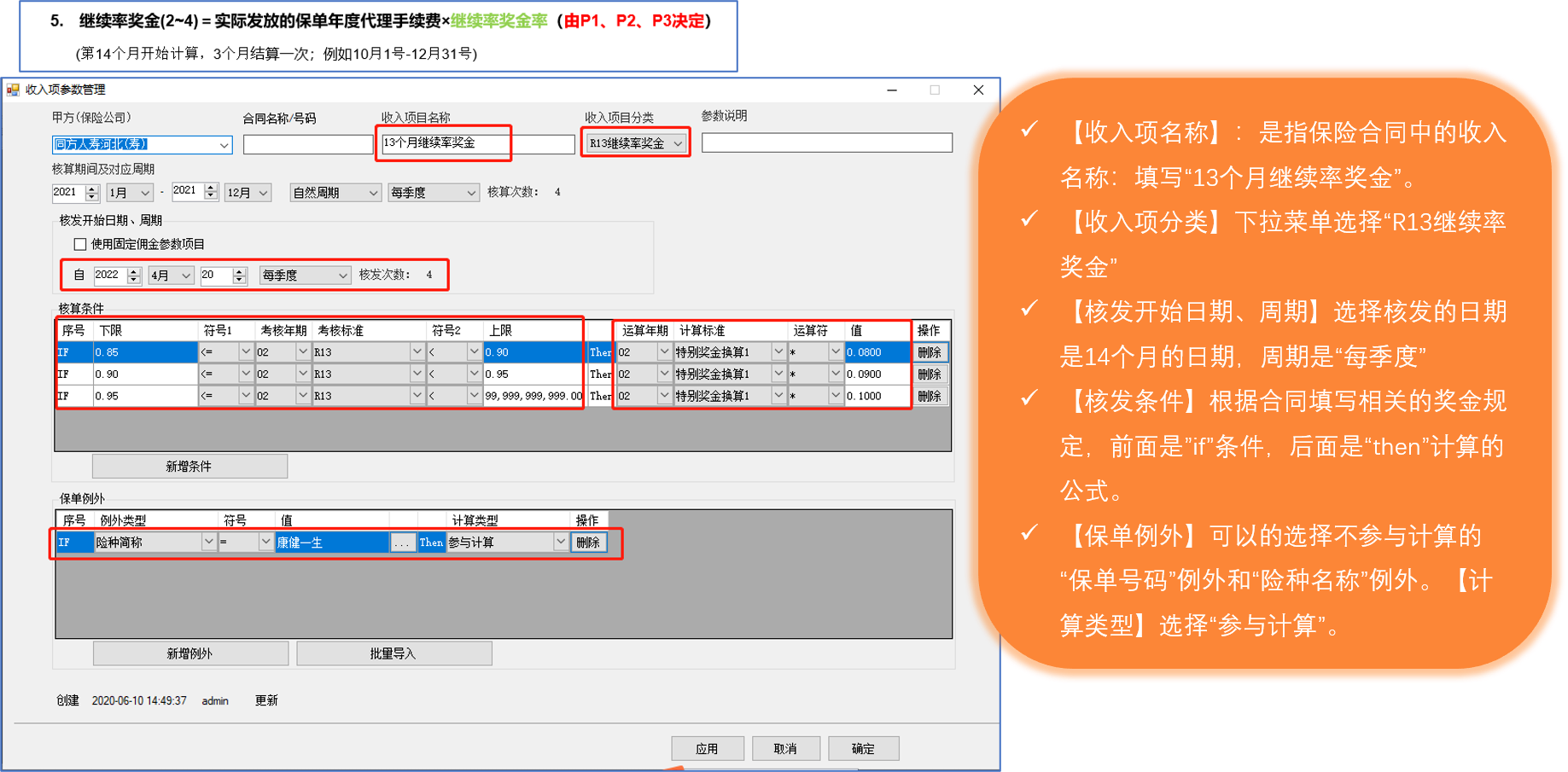 3-收入项参数管理—第13个月继续率的配置