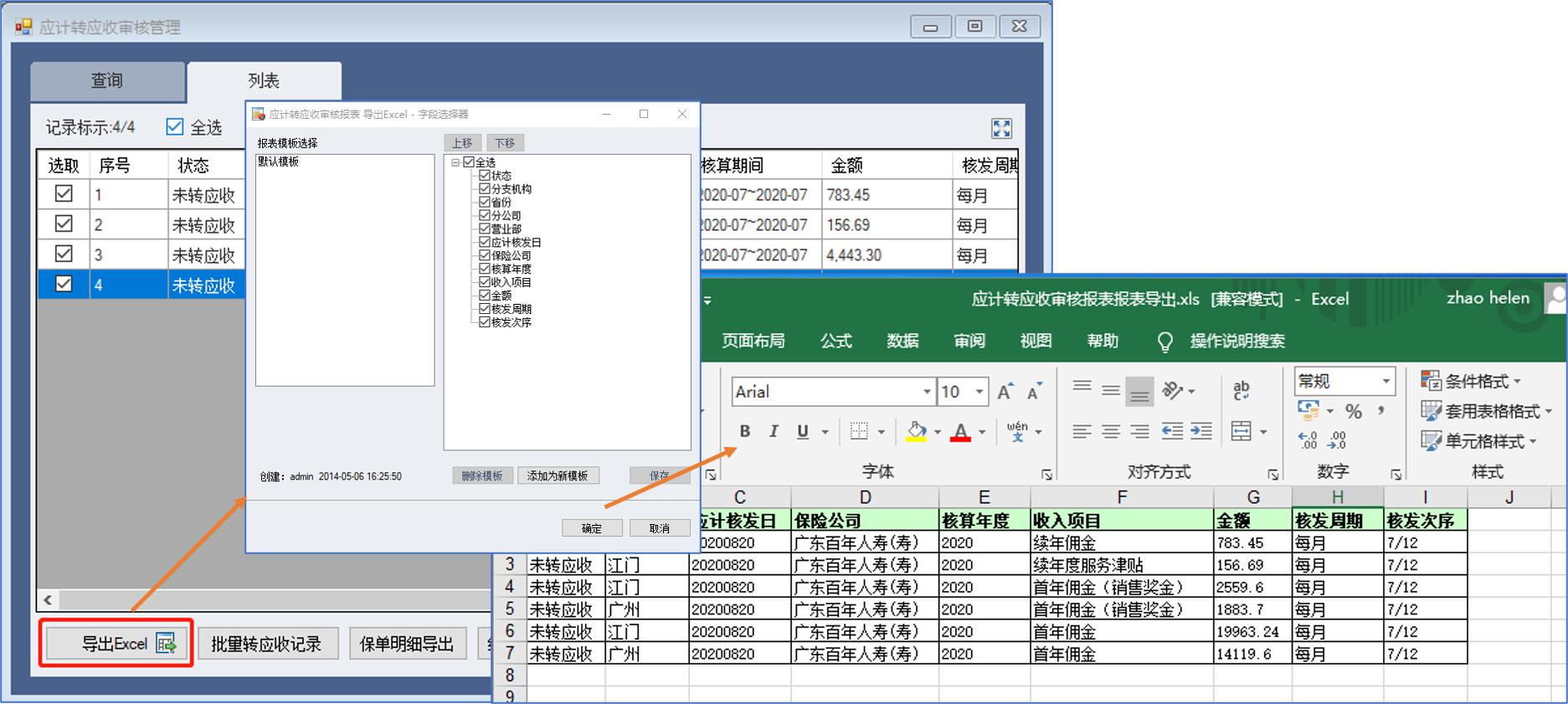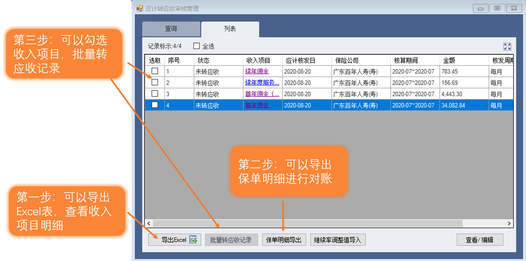 2-应计转应收审核管理—导出保单明细对账