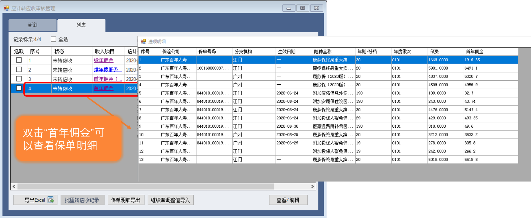 2-应计转应收审核管理--查看保单明细
