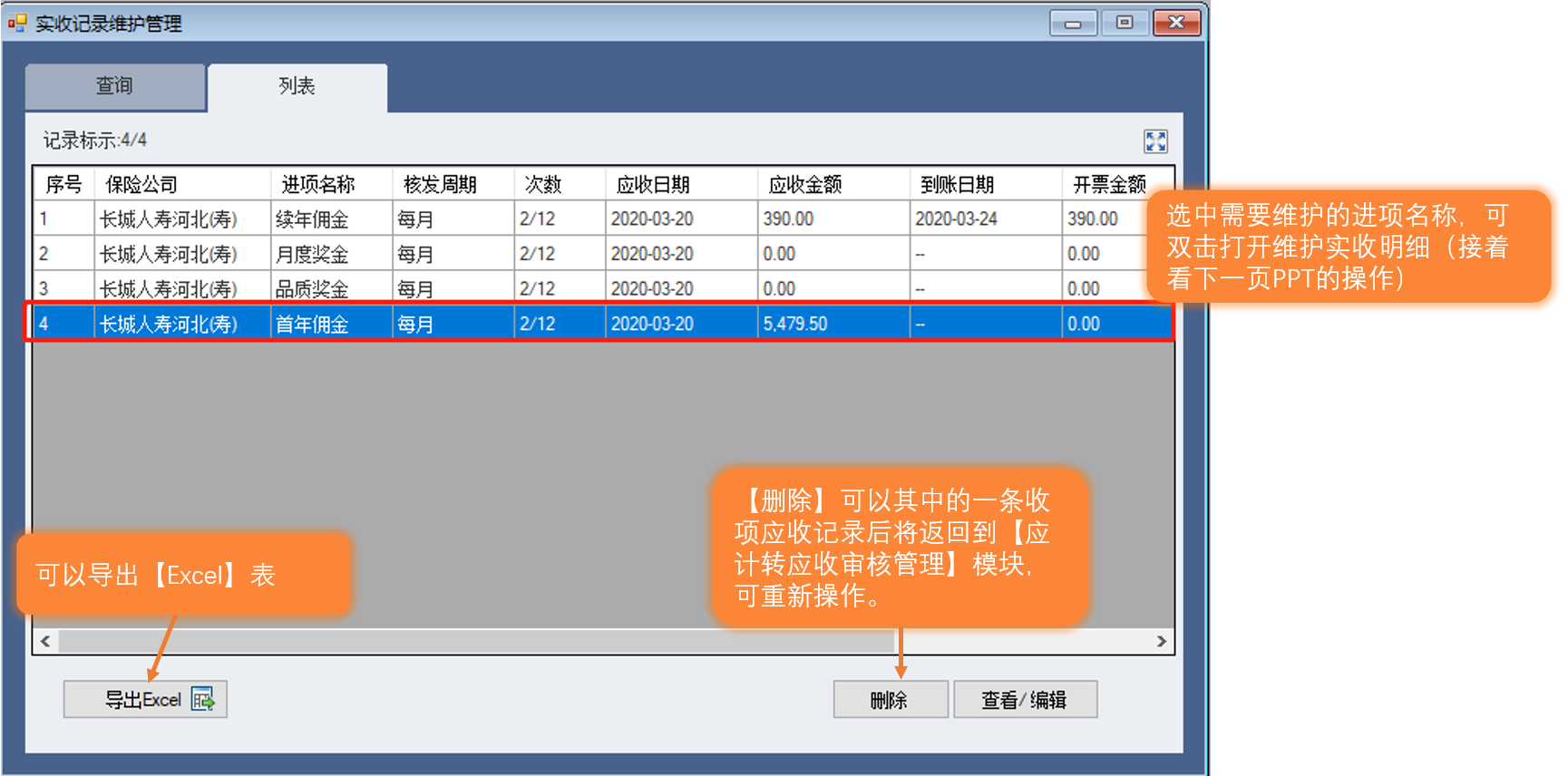 1-实收记录维护管理—导出、编辑
