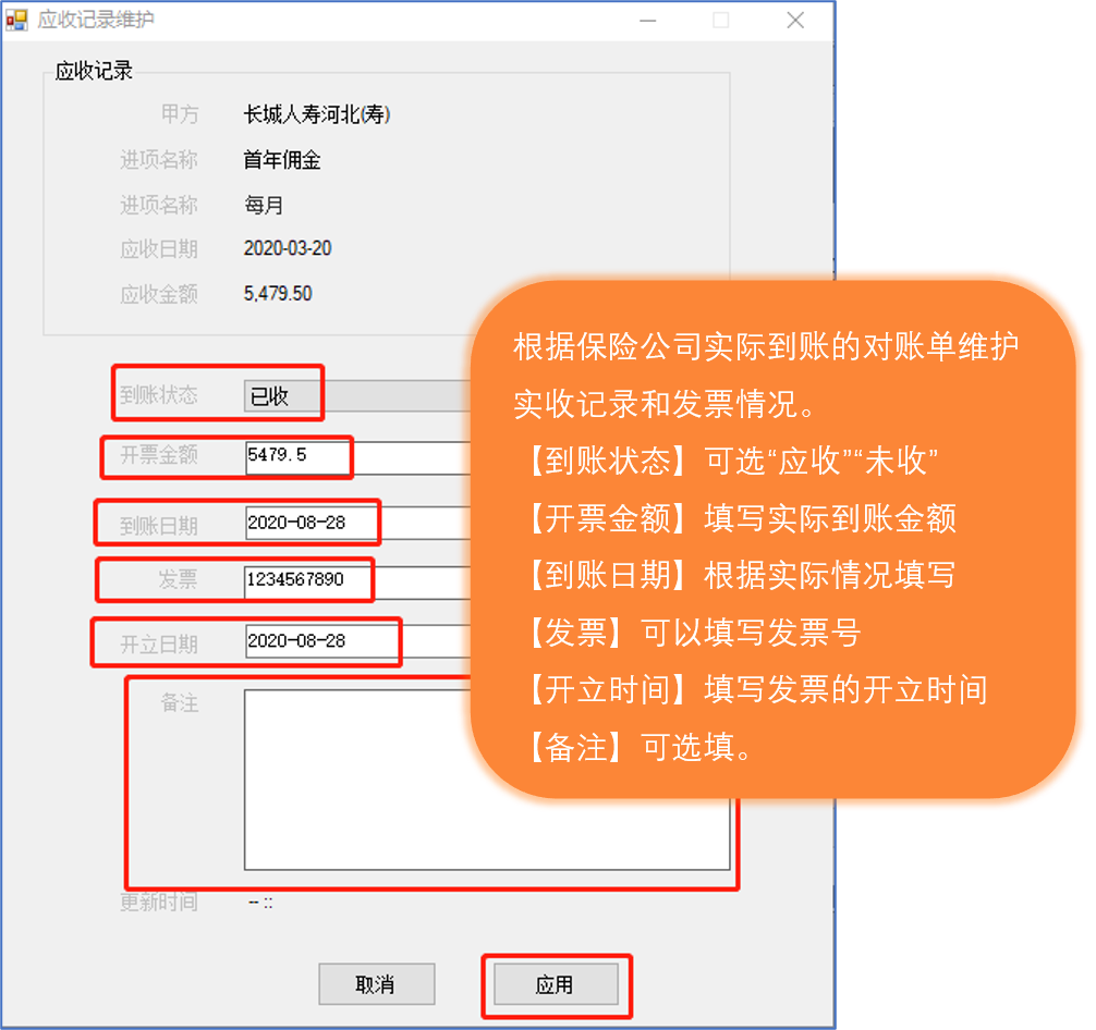 3、可以帮助您管理保险公司的进项记录,可以注明哪些已经收了,哪些项还没收到,这样对于现金流测算能起到一定的帮助;