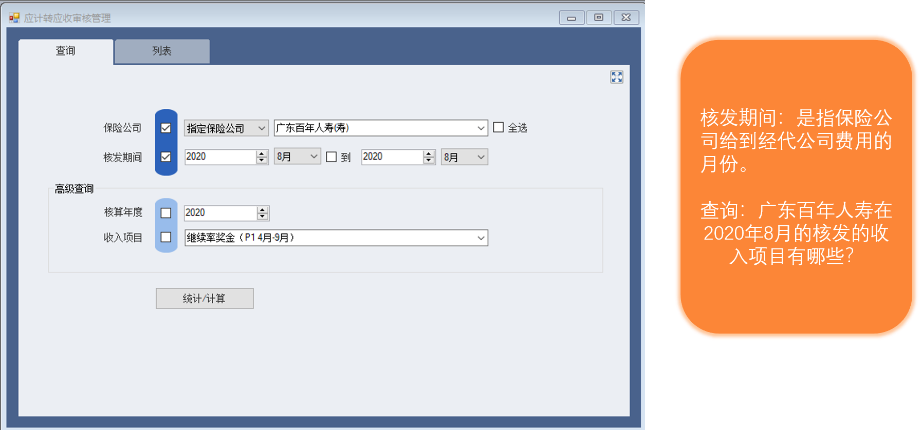 面向:负责寿险业务管理的老师,负责核对上游收入项的核算老师