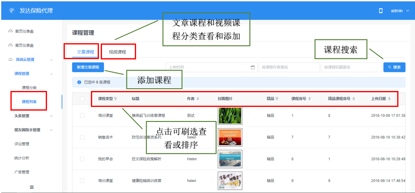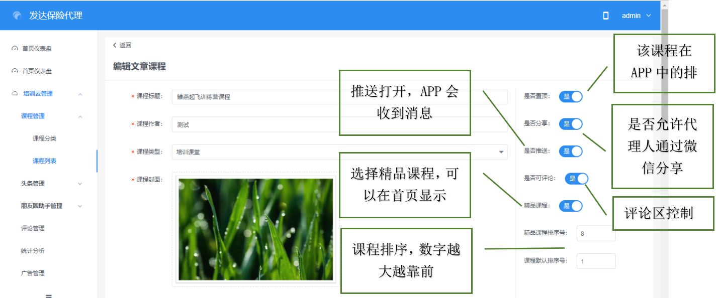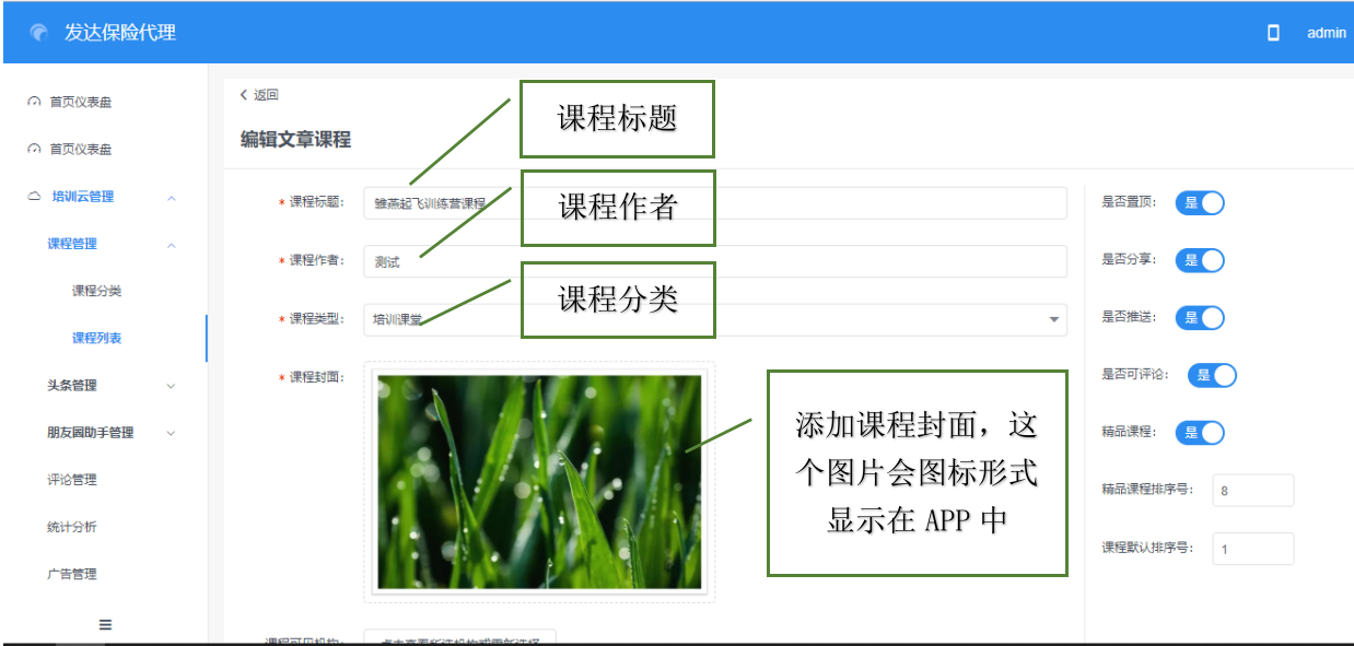 首先,学习一下新建文章课程,点击课程列表,新建文章课程,出现如图画面: